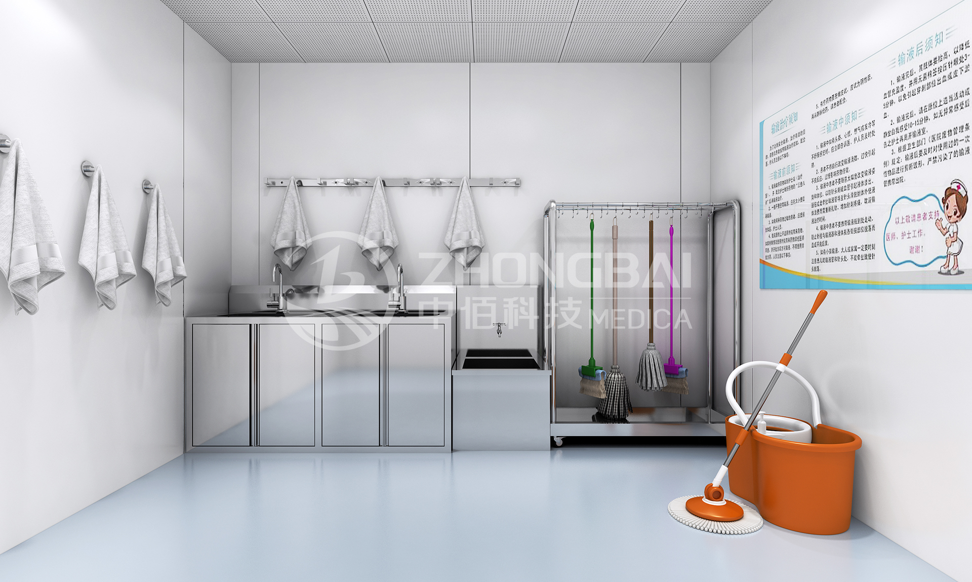 洗嬰室需要結合新生兒護理工作的模式和環境,進行整體設計,注重安全、預防感染,營造符合嬰幼兒特征的活潑可愛、安全溫馨的場景氛圍。